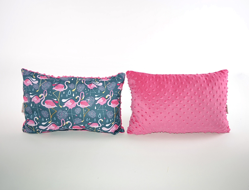 Ta poduszka to bardzo przyjemna wysokogatunkowa, certyfikowana tkanina drukowana, która doskonale pasuje do nieziemsko miłego, oryginalnego polaru minky.